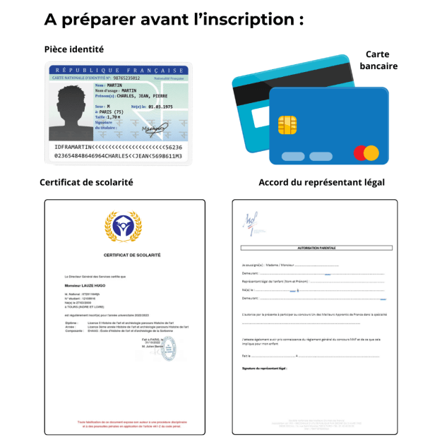 d’identité recto-verso, de votre certificat de scolarité et d'un accord du représentant légal signé pour les mineurs (nés après le 1er février